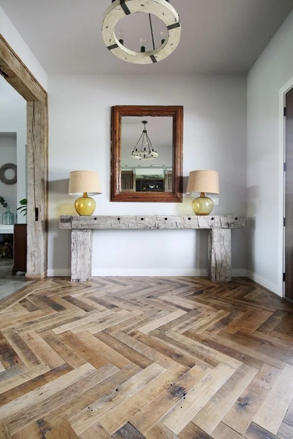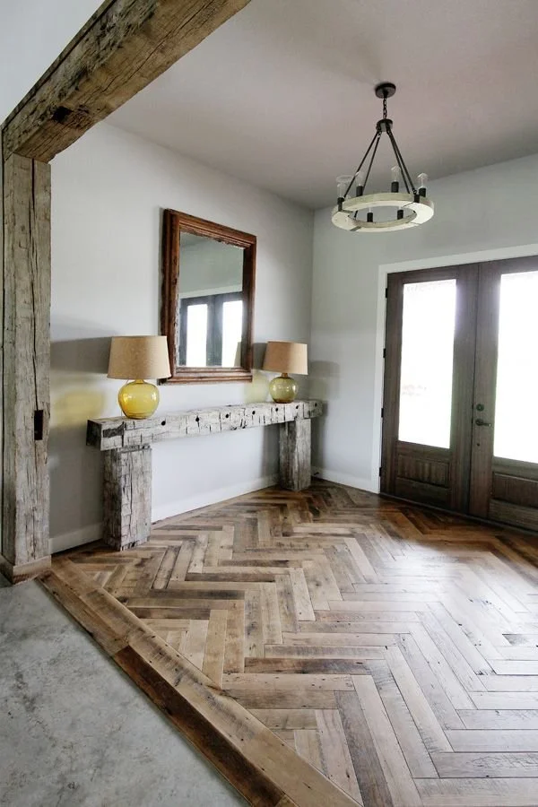 Floors- Reclaimed Oak // Beams- Reclaimed Hand Hewn // Boards- Oak